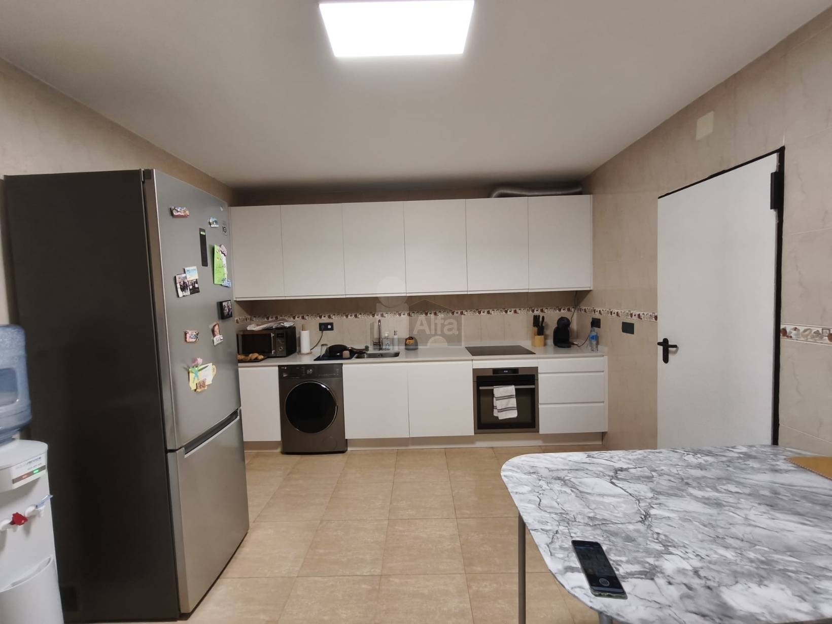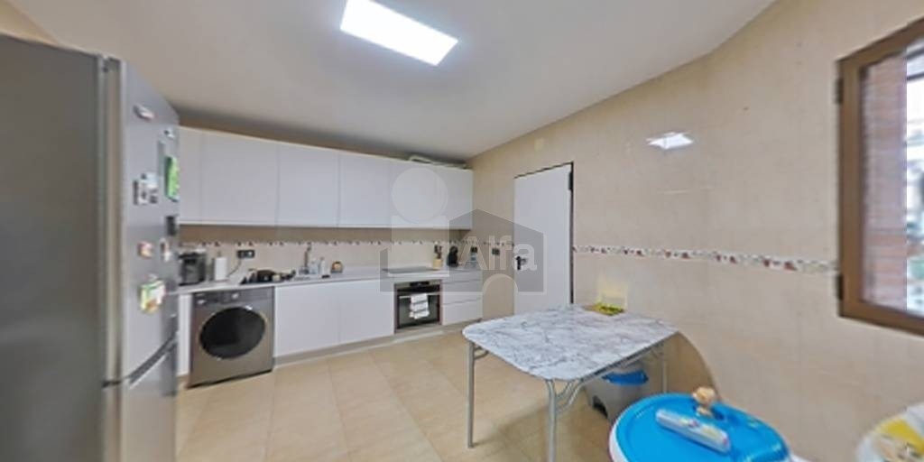 La cocina, de grandes dimensiones, cuenta con despensa y acceso directo desde el garaje. En esta planta también hay un aseo de cortesía, un armario empotrado en la entrada y un amplio salón con salida al patio, ideal para las reuniones familiares o las noches de verano.
